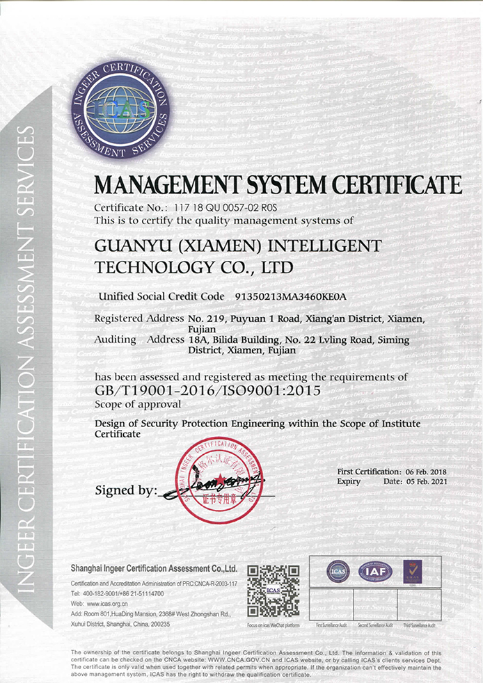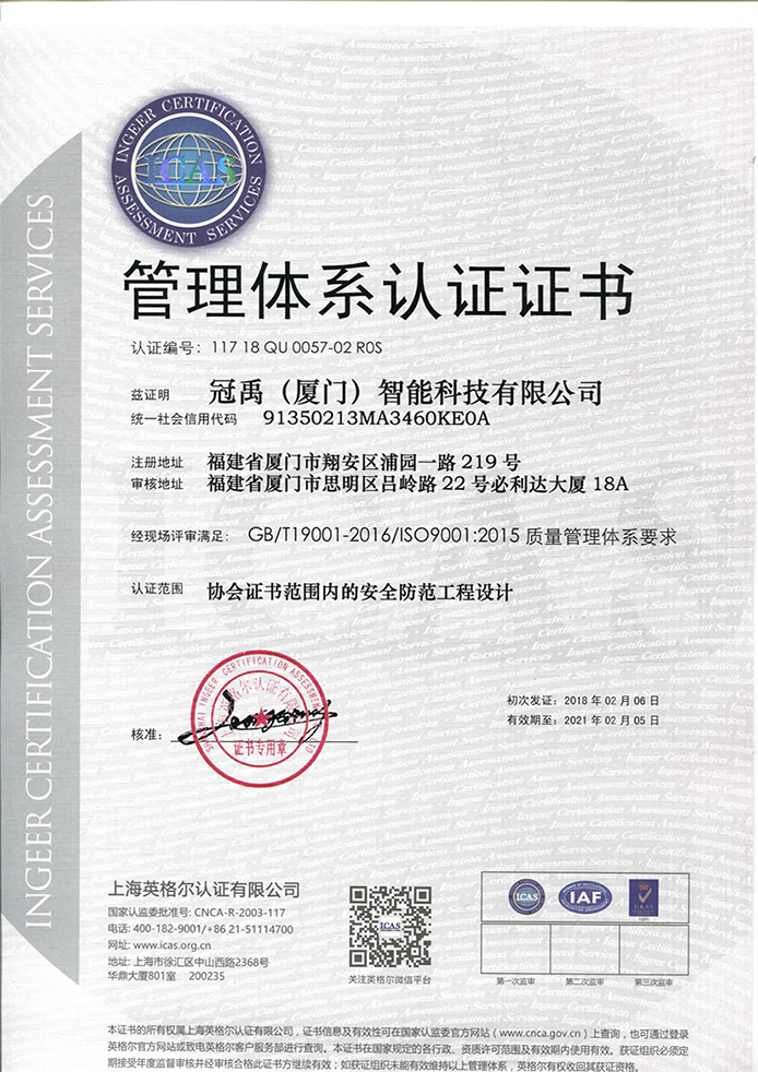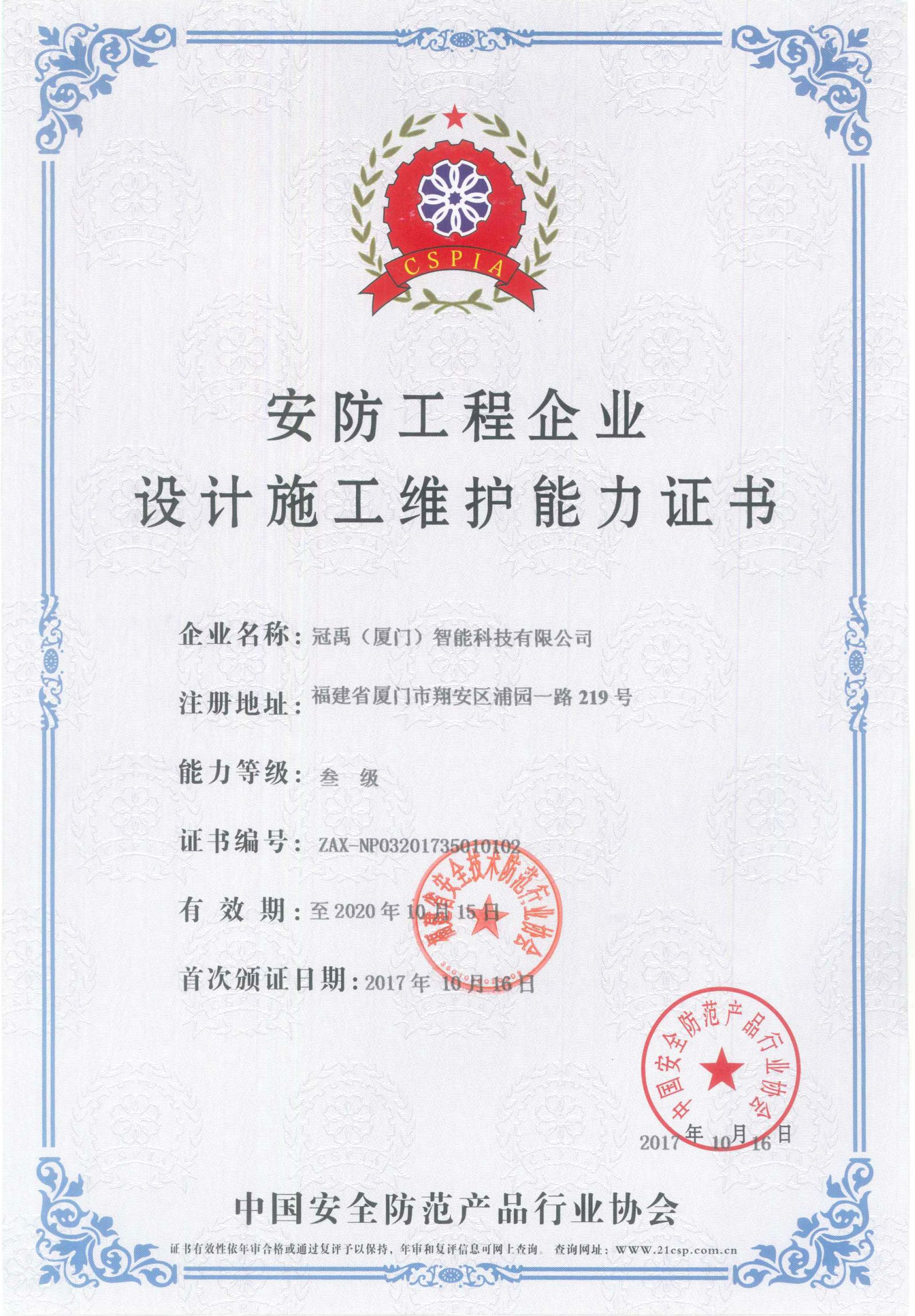安防工程企業(yè)設計施工維護能力證書(shū)