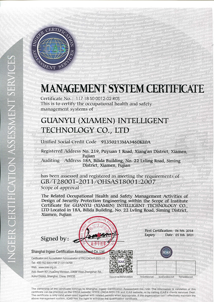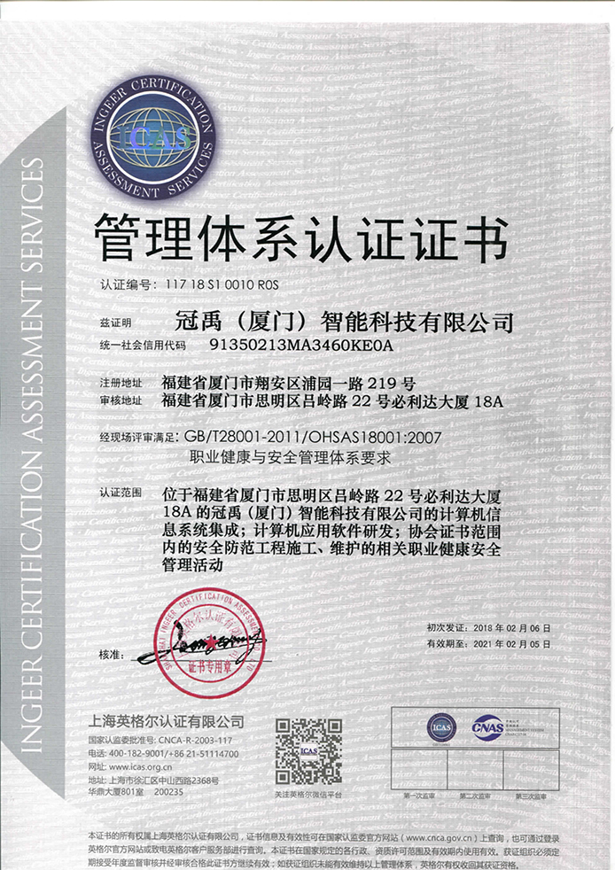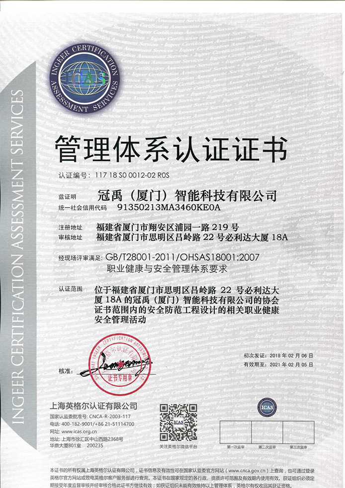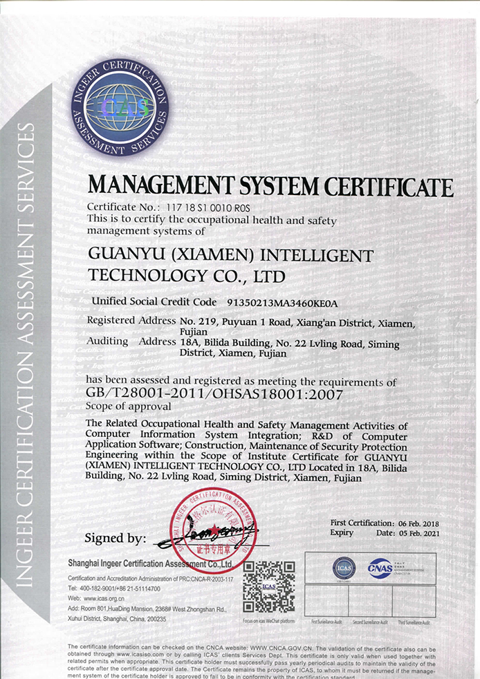 職業(yè)健康安全管理體系認證證書(shū)1(英文)