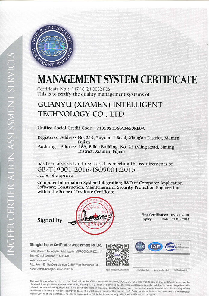 質(zhì)量管理體系認證證書(shū)1(英文)